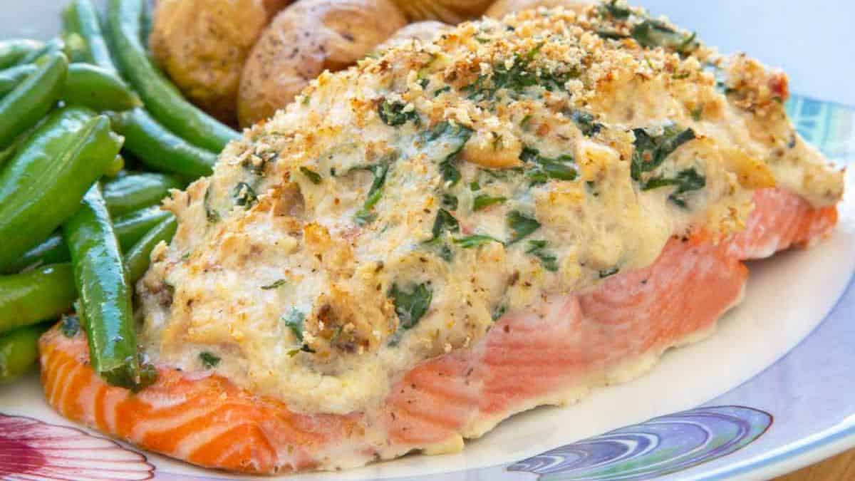 Make this restaurant quality Crab And Spinach Stuffed Salmon easily at home. This creamy salmon recipe is perfect for special occasions and will be sure to impress your family or guests.