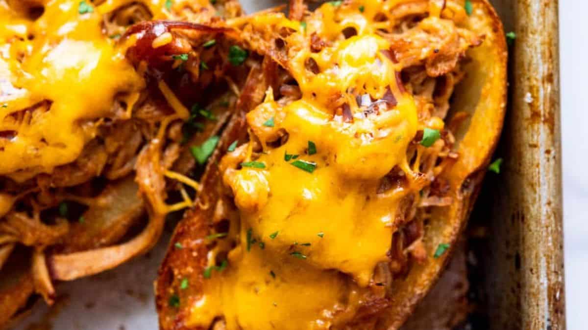 Get the recipe: Ultimate Pulled Pork Stuffed Potato Skins (a.k.a. Pigskins)