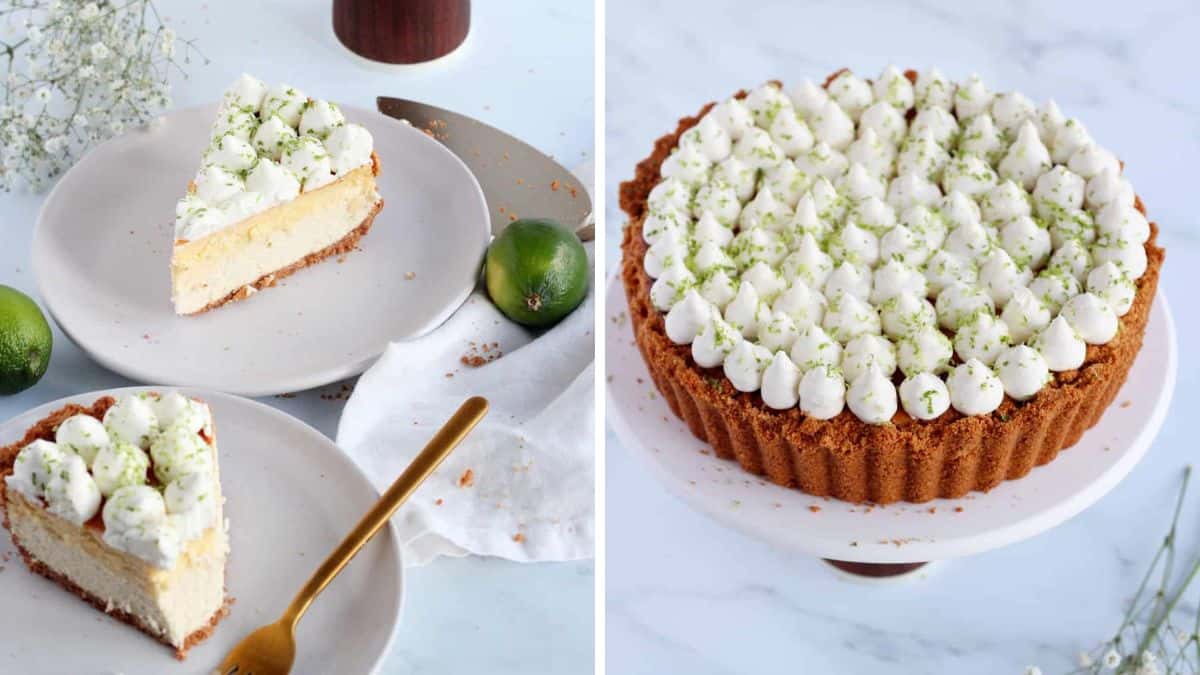 This Key Lime Cheesecake Tart is a perfect balance between tart and sweet. It has a thick graham crackers crust, one half layer of sweet New York cheesecake, another half from key lime cream, and is topped with whipped cream.