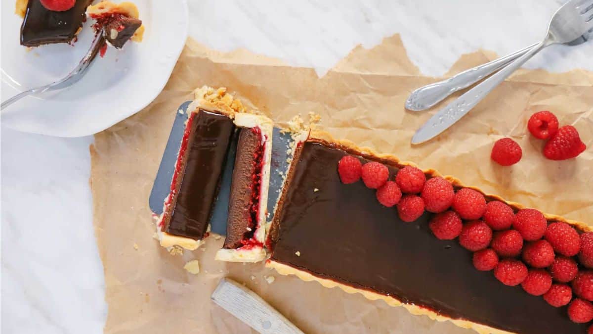 This Chocolate Tart with Raspberries is a delicious dessert you have to try. A rich chocolate ganache and raspberry jam on a buttery crust. Simple but delicious it is a tart you have to try.