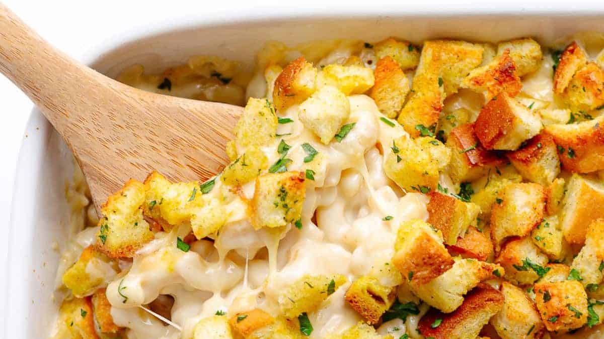 This Gouda Mac and Cheese is loaded with cheesy goodness, featuring a creamy and smoked gouda blend! You can bake it with a crispy, buttery bread topping or enjoy it creamy right from the stovetop.