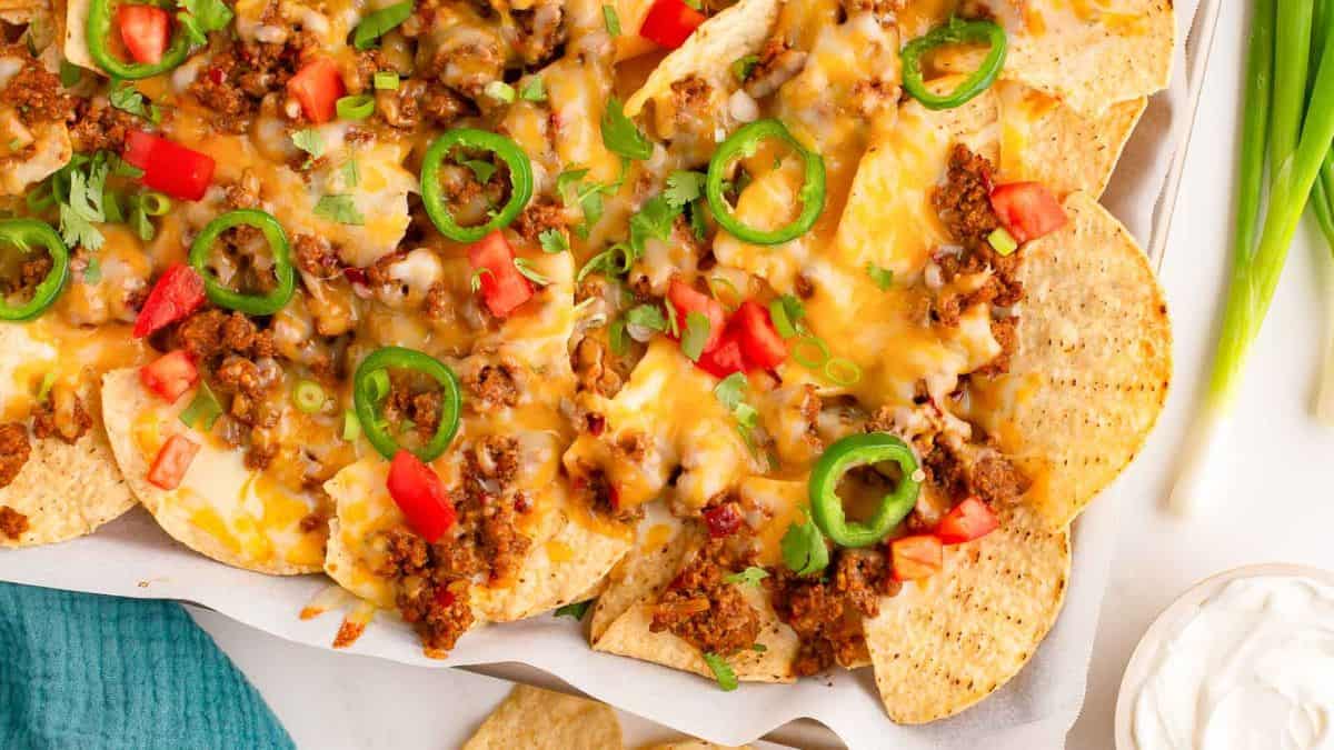 These Beef Nachos are the ultimate mix of flavors and textures. Crunchy chips, seasoned beef, melted cheese, and fresh toppings like tomatoes and green onions. This dish is a real crowd-pleaser.
