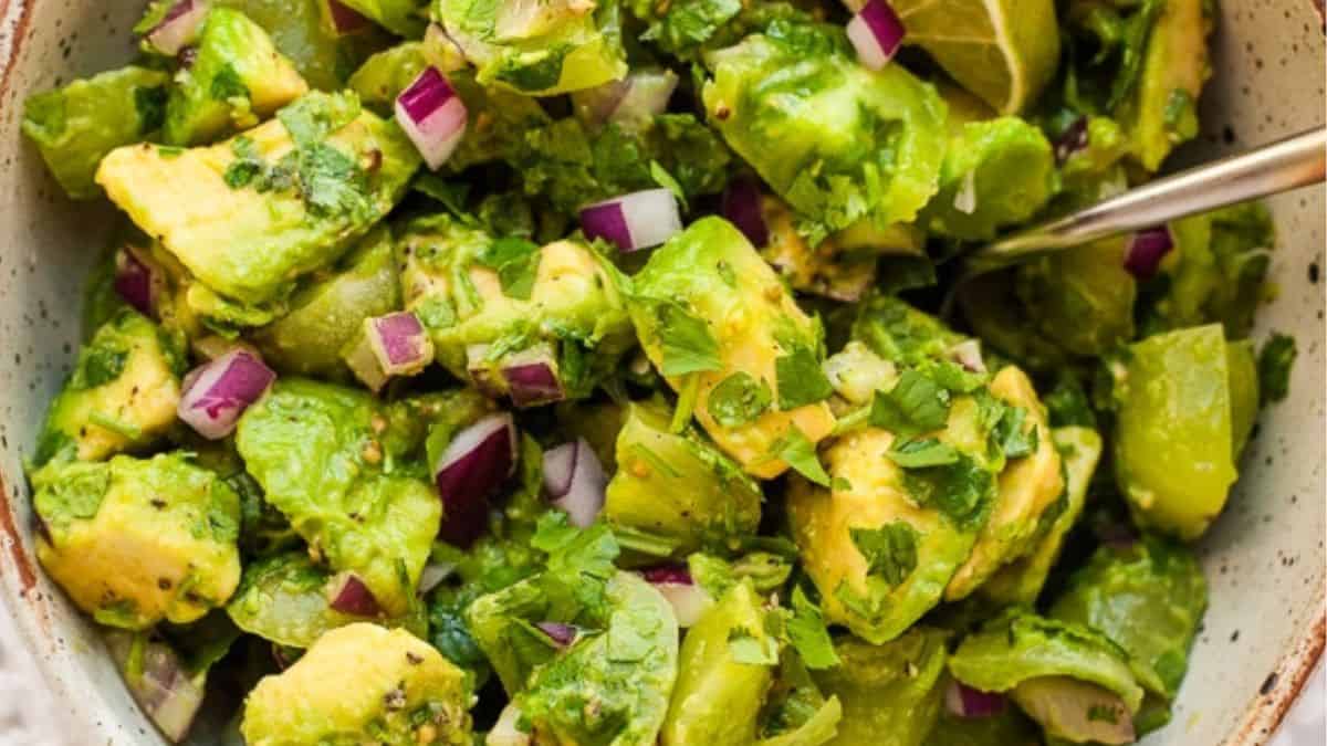 If you are looking for an easy salsa for Mexican dishes and tacos, try this tangy green cherry tomato and avocado salsa. This salsa is juicy, sweet, and rich thanks to avocado.