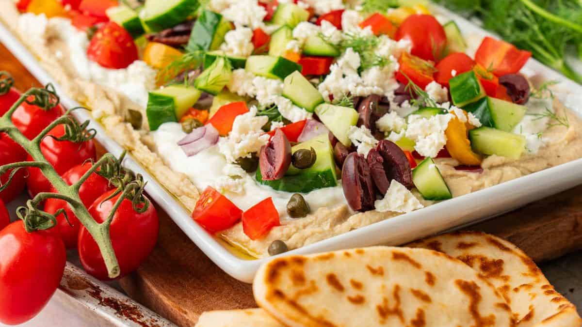 This loaded hummus dip takes classic hummus to the next level with fresh tomatoes, crisp cucumbers, briny olives, and feta cheese. Bright, creamy, and full of Mediterranean flavor, it’s a no-cook recipe that’s perfect for entertaining or serving as a quick and easy side.