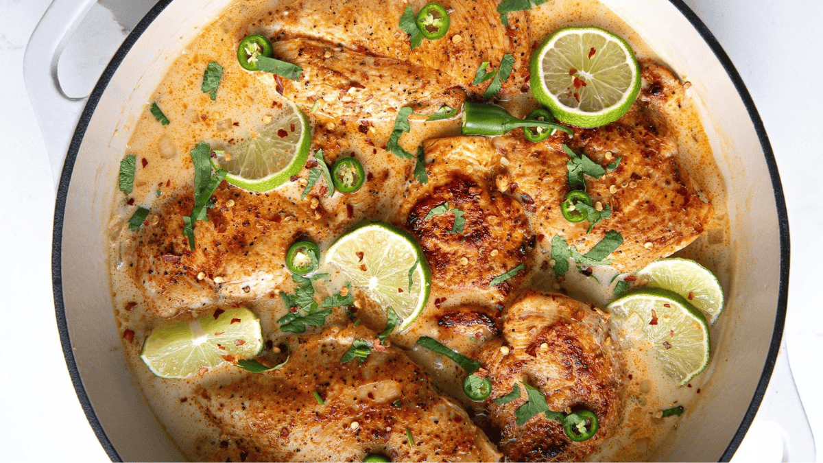 This creamy coconut milk chicken recipe is made with fresh lime juice, creamy coconut cream, and tender, juicy chicken breasts. Super easy to make in just under 30 minutes.