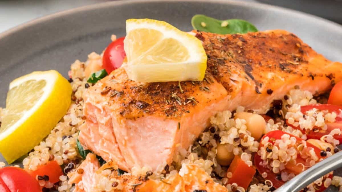 Flaky salmon pairs perfectly with fluffy quinoa and a burst of fresh vegetables, all tossed in a zesty lemon dressing. This complete meal is easy to whip up and even easier to love. Plus, it's perfect for meal prep so you can enjoy delicious lunches throughout the week.