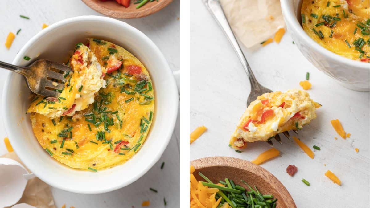Busy morning? No problem! This Microwave Mug Omelet is a 5-minute healthy breakfast idea that's protein-packed, customizable, and way better than a granola bar.