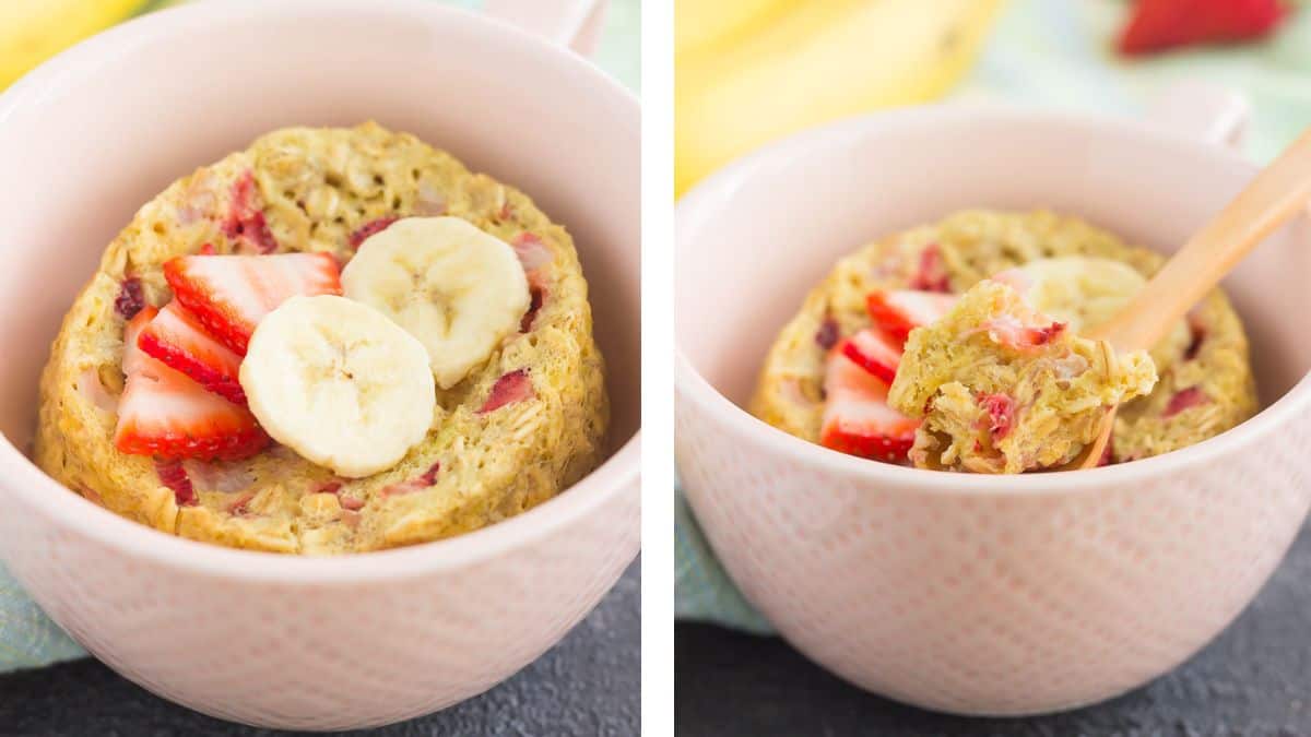 Get the recipe: Strawberry Banana Baked Oatmeal in a Mug