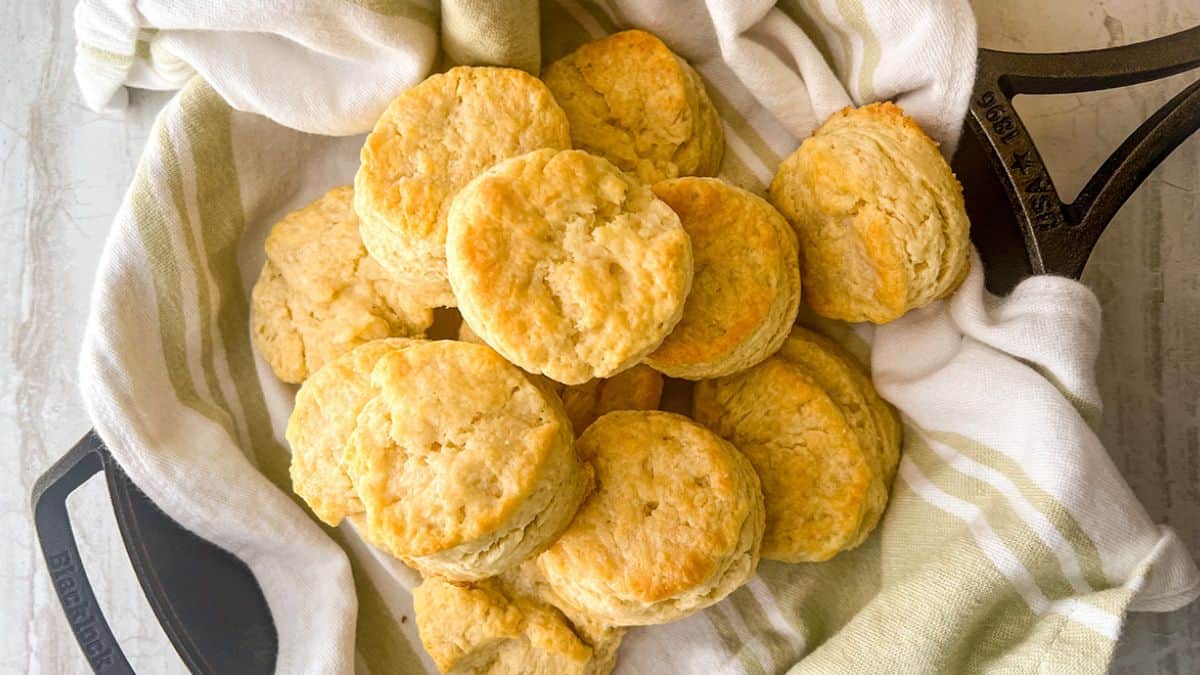 These Old-Fashioned Buttermilk Biscuits are baked in a cast iron skillet, and are a classic southern staple. The combination of a skillet and a great recipe makes fluffy, buttery biscuits with a golden crust that is both crunchy and soft. Yum!