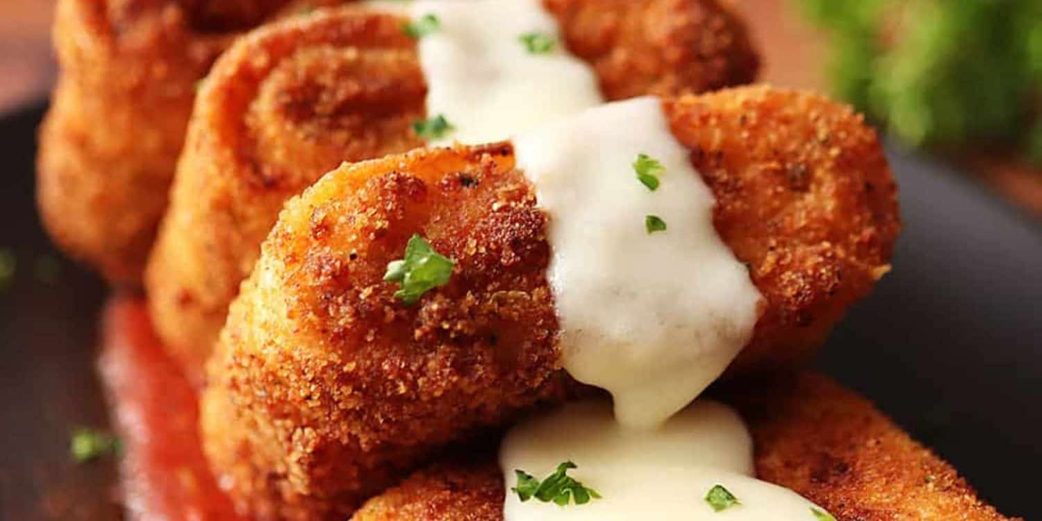 Air fryer lasagna fritta is an Olive Garden copycat recipe. It's made with rolled lasagna filled with five cheeses, then breaded and air-fried until golden crispy. Serve with alfredo or marinara sauce.