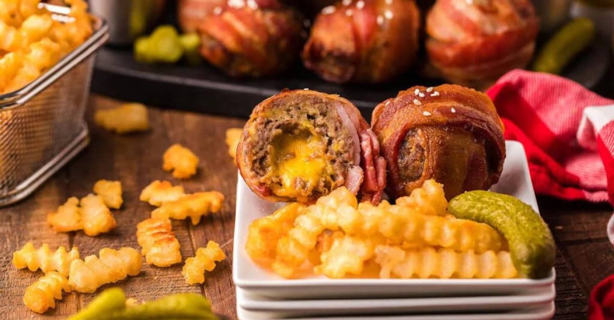 These bacon-wrapped burger bombs are amazing appetizers for any occasion. They are tasty and require very few ingredients to prepare.