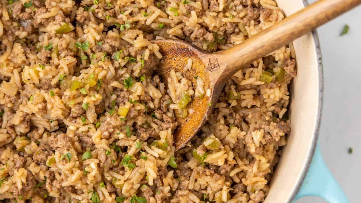 This Southern-inspired dirty rice recipe is made with the holy trinity of Cajun cooking then cooked with rice for a delicious dinner recipe.