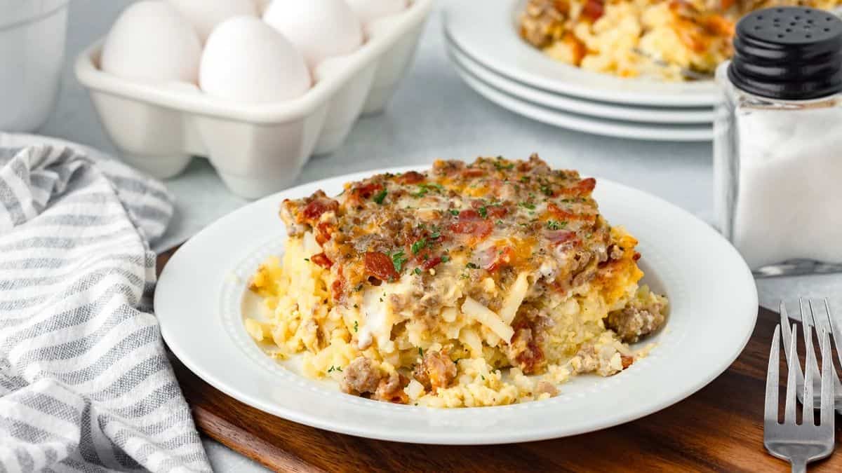 Try this Amish Breakfast Casserole With Cottage Cheese which is perfect for breakfast ideas for potluck. It's packed with crispy bacon, sausage, hash browns, and three cheeses for a crowd-pleasing holiday breakfast!