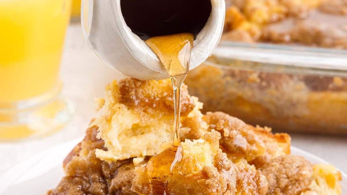This Overnight French Toast is a simple breakfast potluck that takes just 10 minutes to prep, just layer bread with custard, let it soak overnight, and bake the next day with a buttery cinnamon-sugar topping.