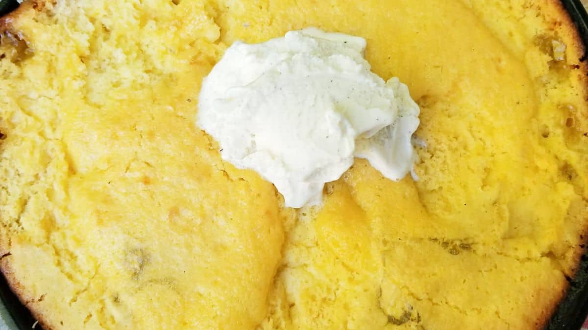 Get the recipe: Campfire Whiskey Peach Cobbler