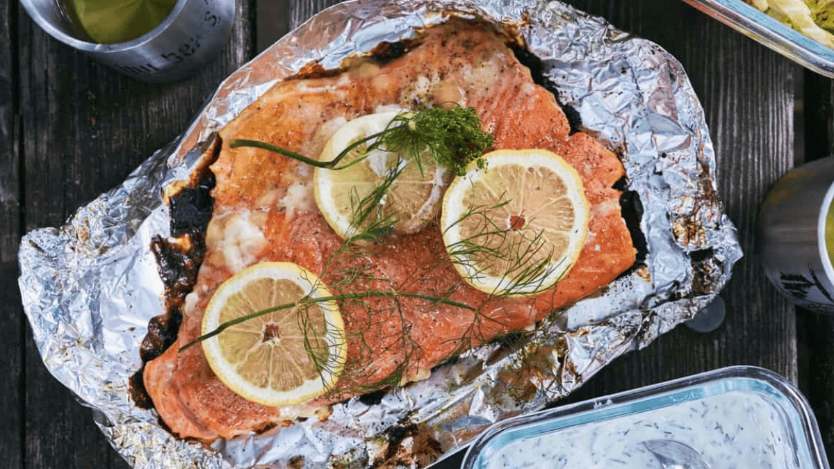Get the recipe: Campfire Salmon with Lemon-Dill Yogurt Sauce