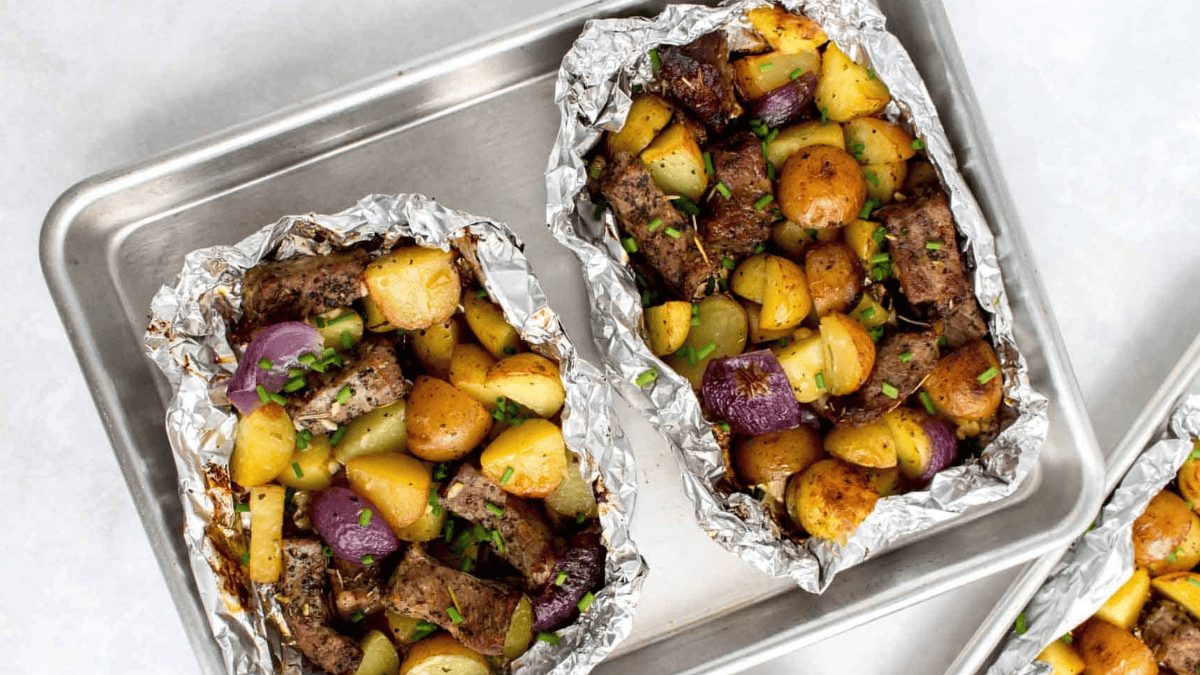 Get the recipe: Campfire Surf and Turf Foil Packs