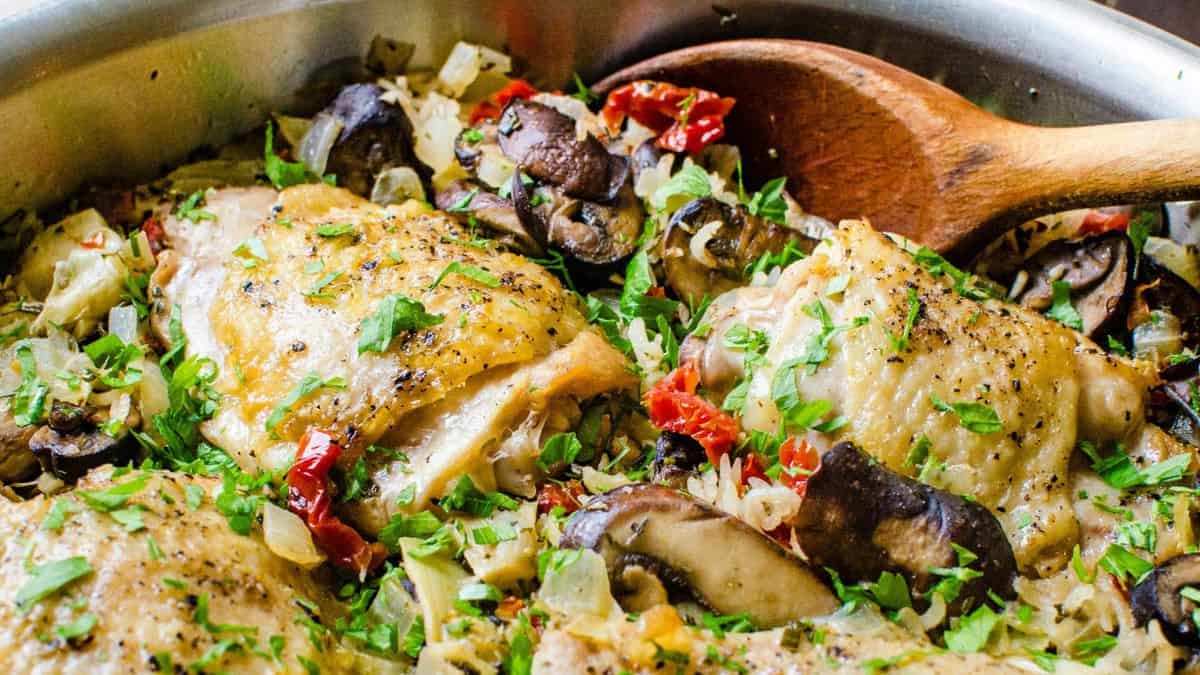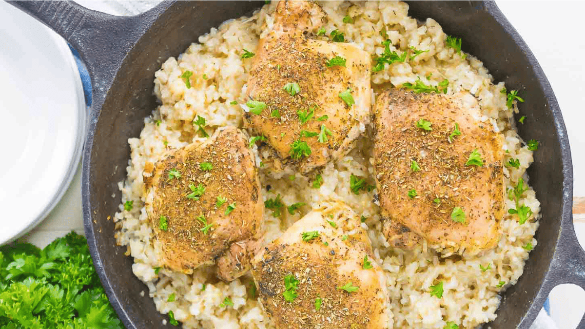 Get the recipe: Mediterranean Chicken Thighs and Rice