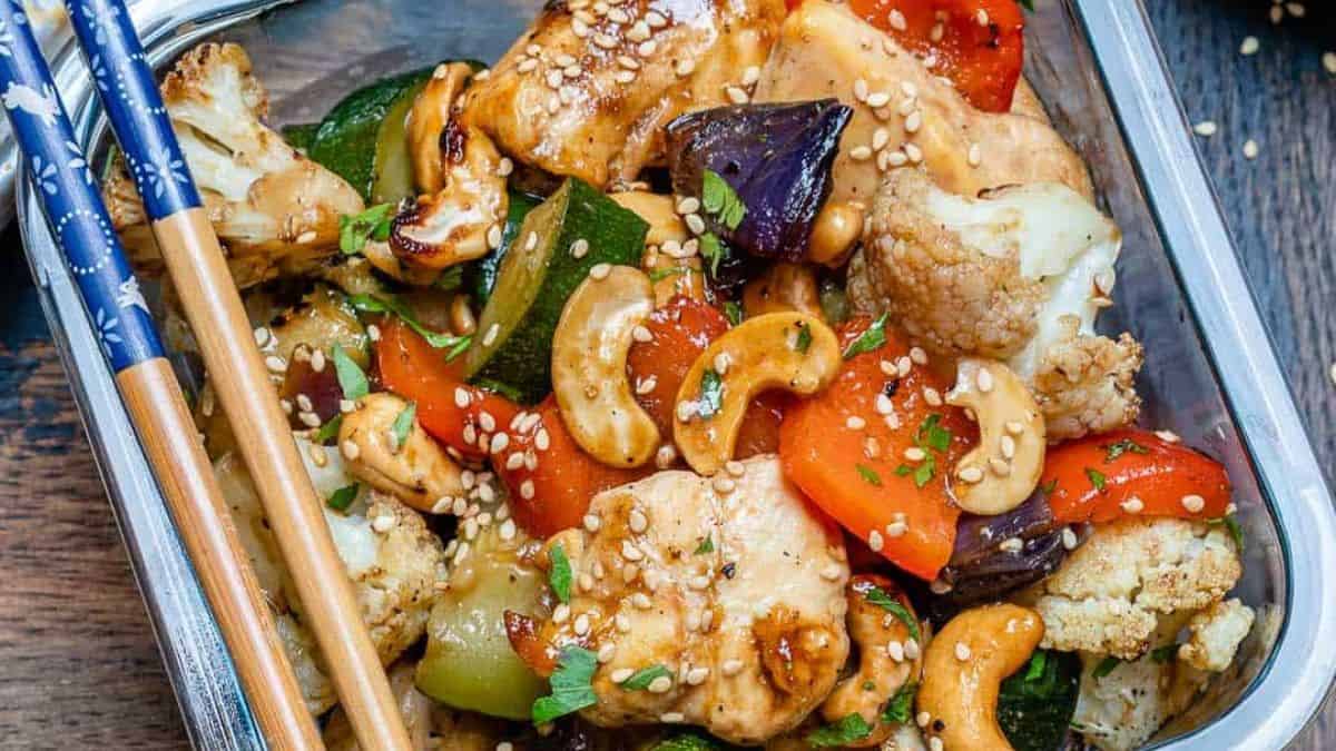 This healthy cashew chicken and veggies recipe is baked instead of stir-fried but just as delicious as the take-out version of this dish. This delicious chicken recipe is perfect for a weeknight dinner.