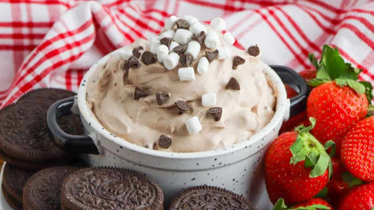 This Hot Chocolate Dip is a quick and dessert dip made using just four ingredients. Hot chocolate mix, Cool Whip, mini chocolate chips, and marshmallow bits make for a special Christmas Dip.