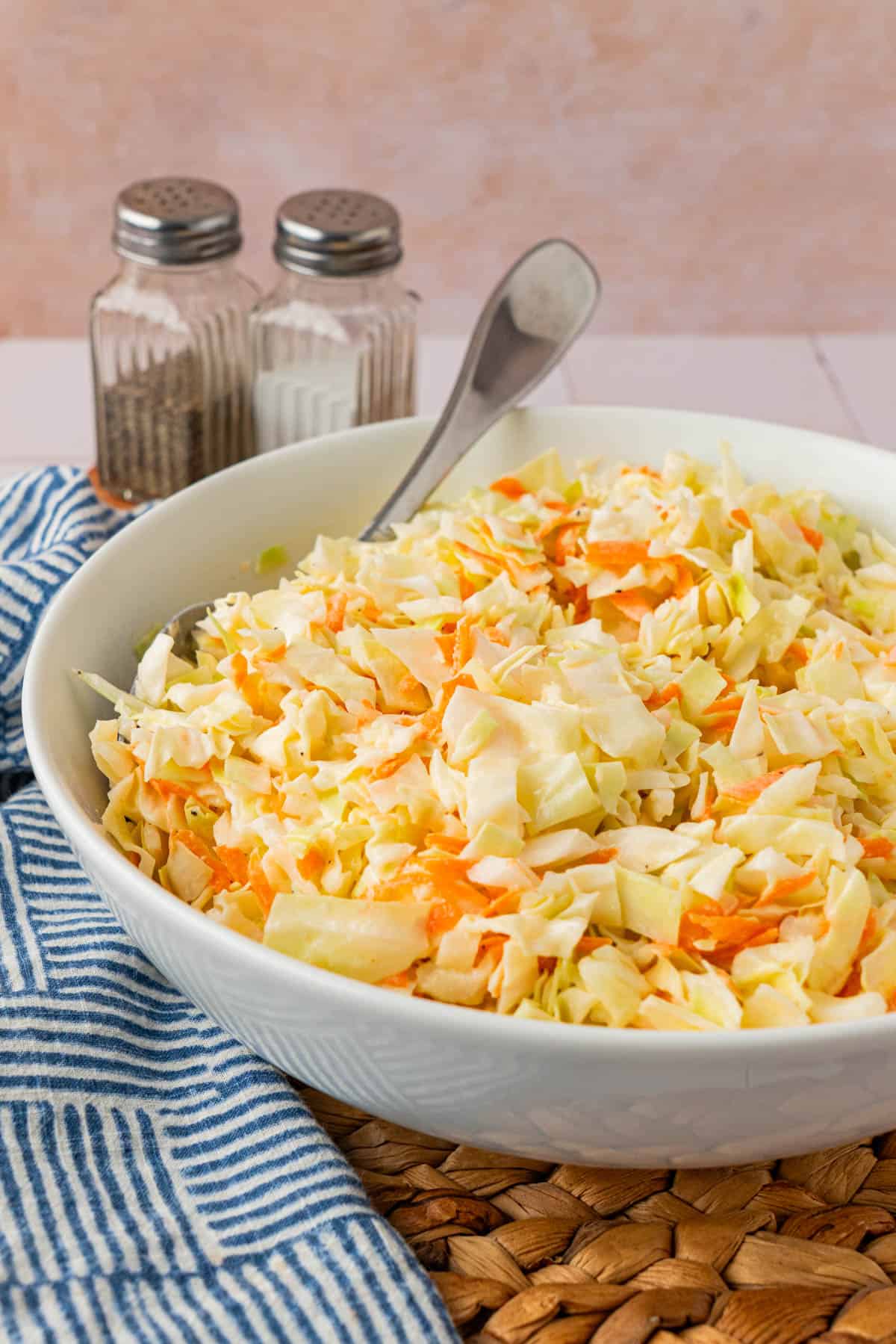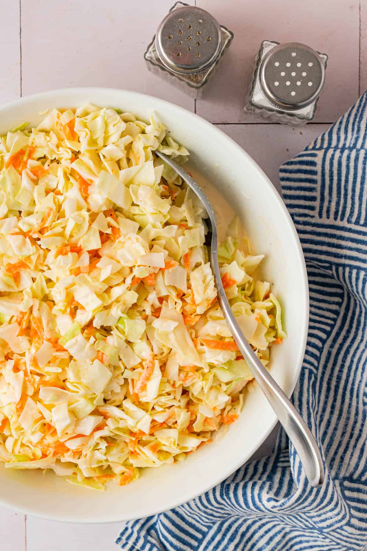 If there is leftover coleslaw, store it in an airtight container in the fridge for 3 to 4 days. Give it a stir before serving, as the dressing can settle at the bottom. This KFC coleslaw recipe copycat does not freeze well; the cabbage becomes watery once thawed, so it's best enjoyed fresh from the fridge.