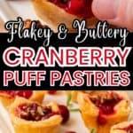 - Place the muffin tin in the oven for 18-20 minutes. The cheese and cranberry may bubble over a little but you can use a spoon to push it back into the puff pastry.