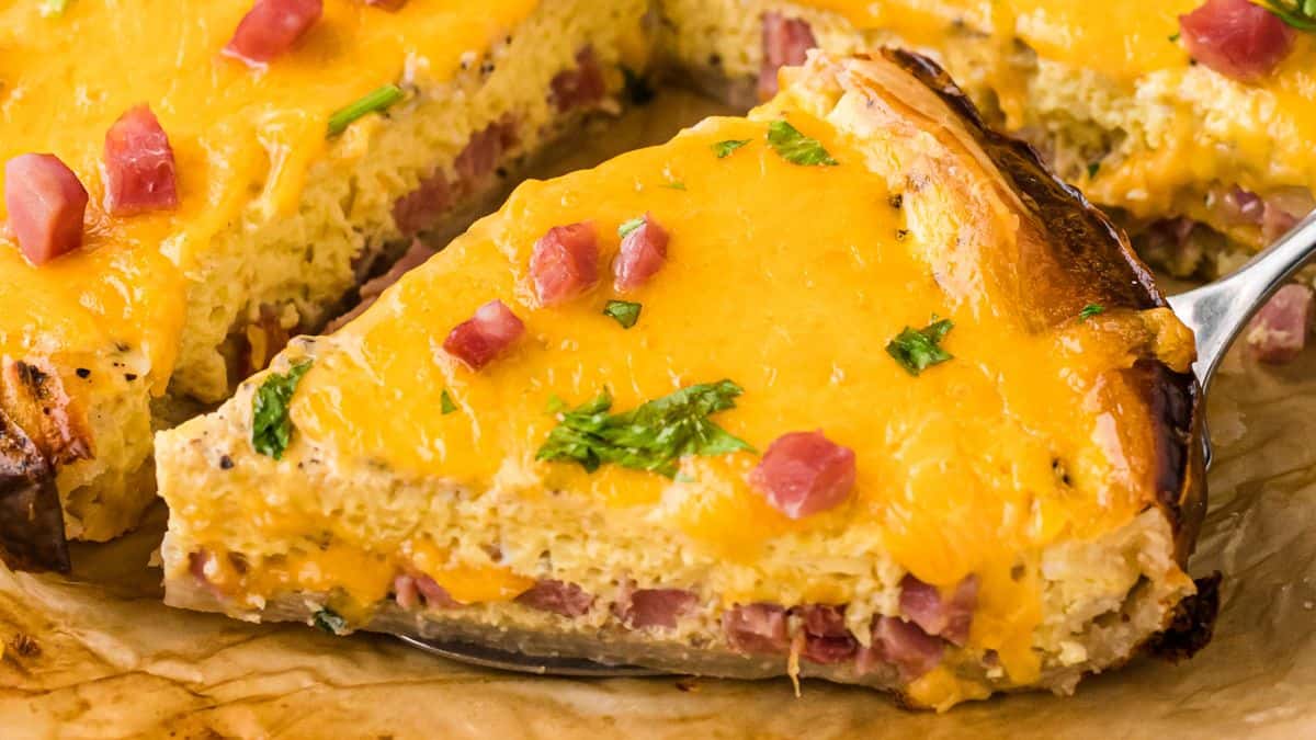 This hearty recipe is a perfect winter holiday breakfast. It is rich, creamy, packed with veggies and ham, and is the best way to use all the leftovers.