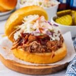 - Serve on buns with extra barbeque sauce, slaw or other desired toppings.