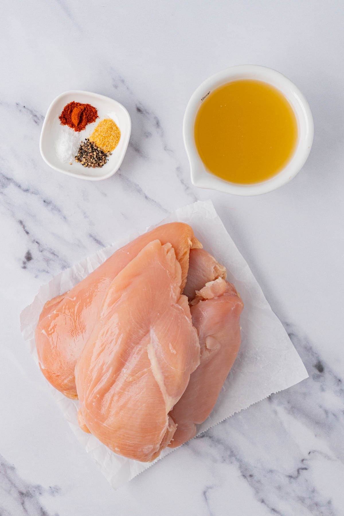 Skinless, boneless chicken breast - The main event of the recipe, excellent for shredding.