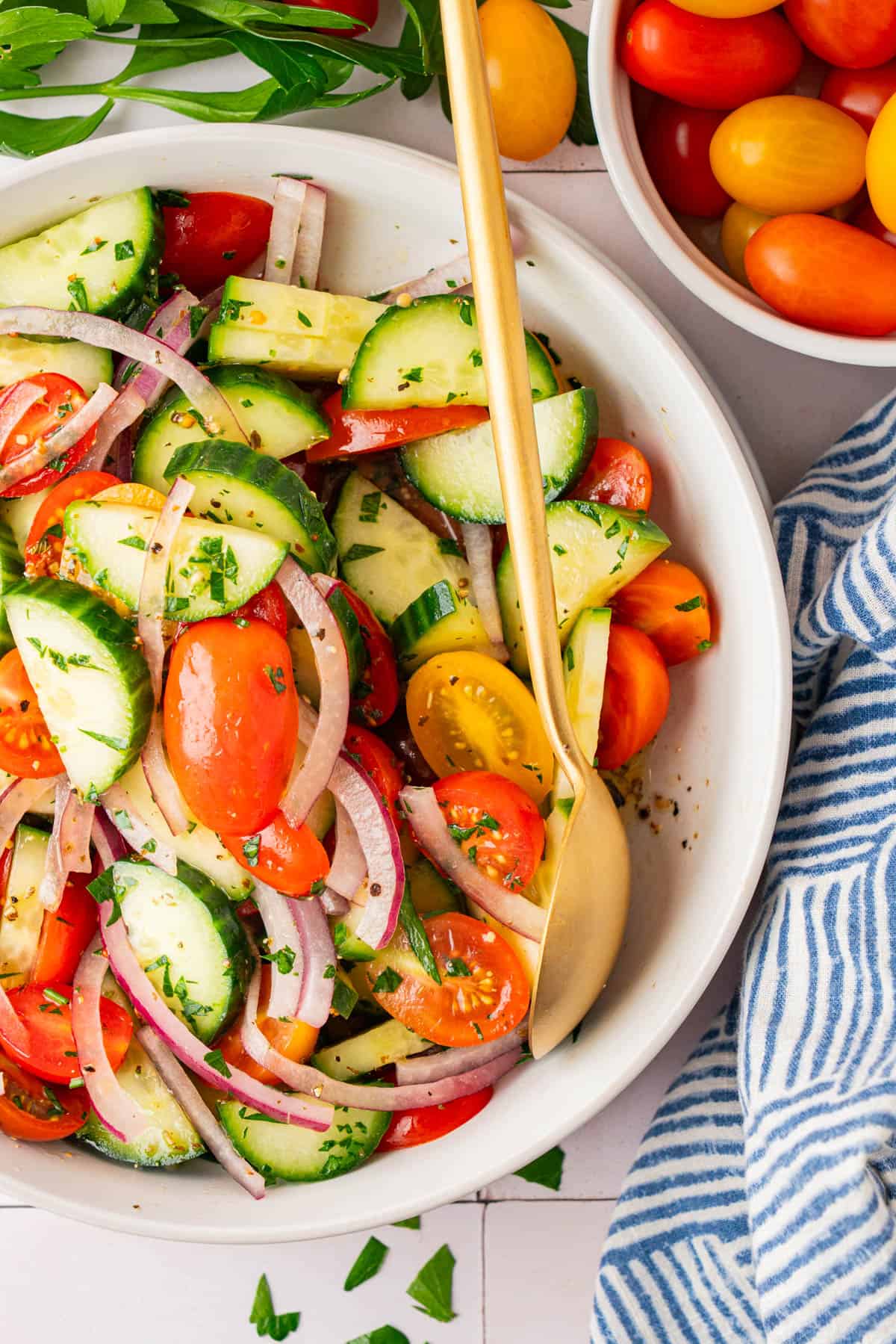 Fresh parsley: It adds bright and herby freshness that elevates this simple salad.