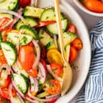- Made with simple pantry ingredients: You likely have everything you need to make cucumber tomato salad tonight.