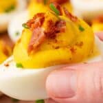 If you make ahead or there are leftover bacon deviled eggs, store them in an airtight container for up to 2 days. The bacon will not be as crispy but they will still taste amazing. Keep them covered to prevent them from absorbing other fridge odors. Avoid freezing, as the texture changes once thawed.