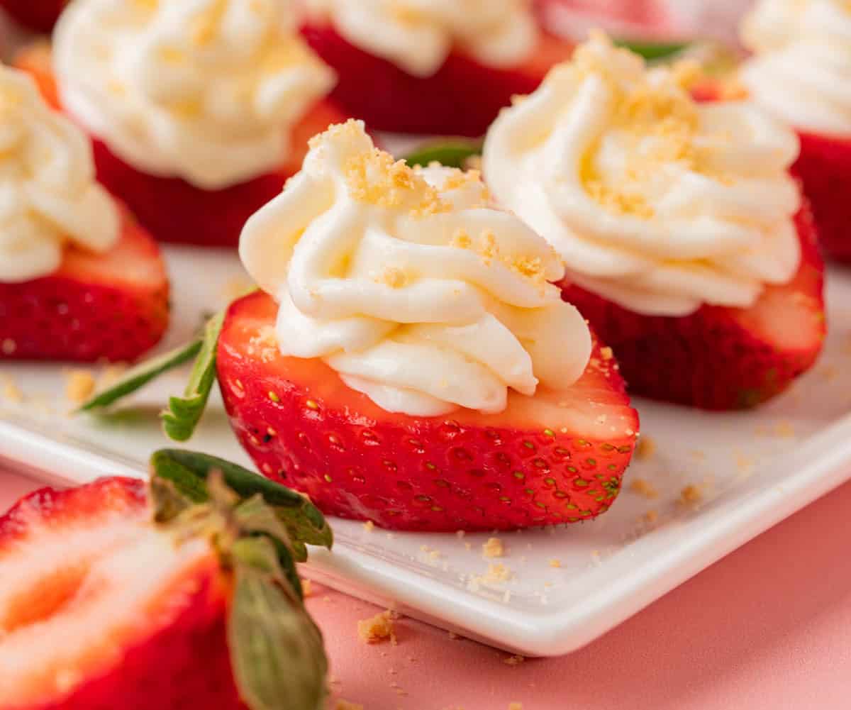 These sweet cream cheese deviled strawberries are so beautiful and will disappear fast!