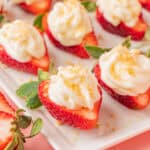 These cream cheese deviled strawberries are the perfect balance of fresh fruit and rich filling. They look pretty and impressive on a platter, yet they can be made in just a few minutes with simple ingredients.