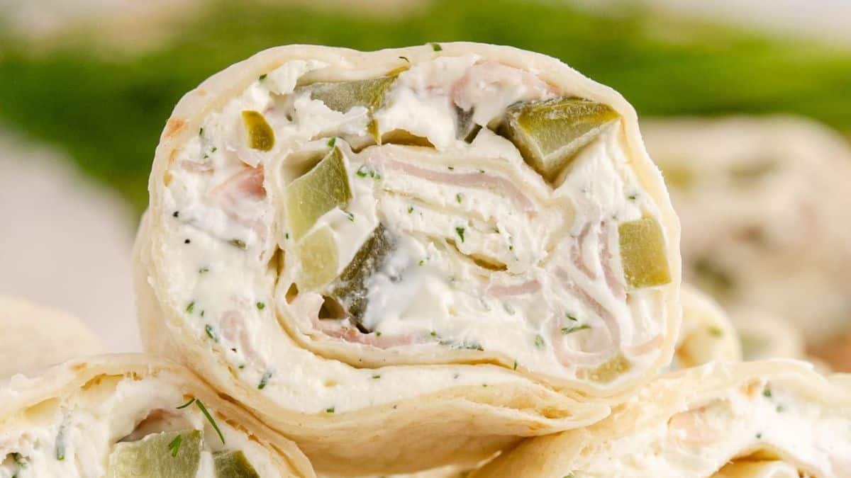 These Dill Pickle Pinwheels are a mixture of pickles, ham, ranch and cream cheese rolled in a flour tortilla. Make these for a party appetizer that everyone will love.