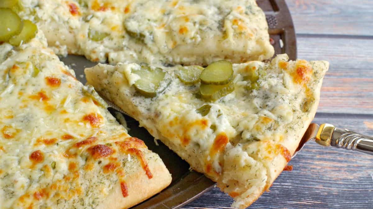 If you love pickles on pizza, try this recipe. It has all the ingredients of a trendy carnival food - delicious creamy sauce, a combination of salty and tangy flavors, and loads of cheese, of course.