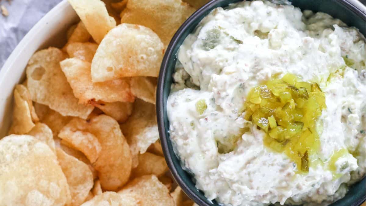 This tangy dill pickle dip will be your new favorite party dip recipe! Serve this cold dip with veggies or crackers for a quick and delicious appetizer recipe.