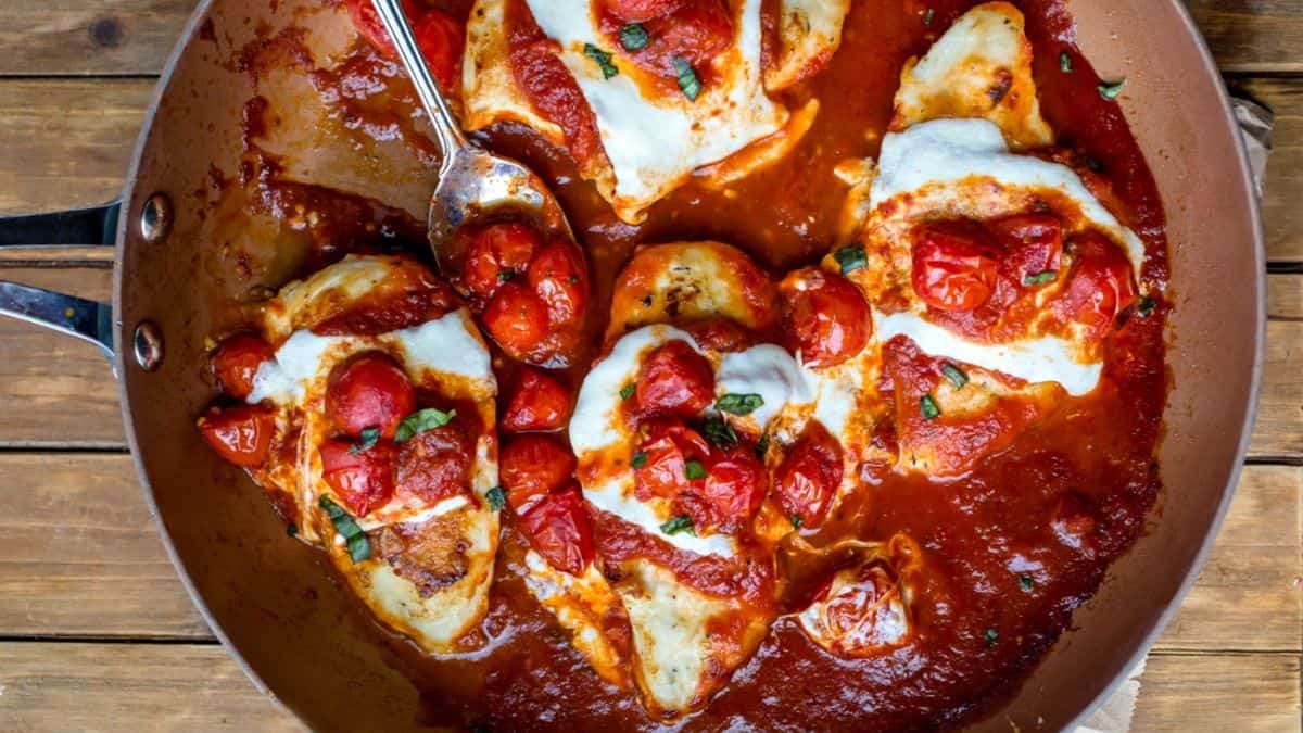 No crumbs? No problem! This skillet chicken parmesan won't require you to use crumbs, but it will give the same chicken with crumbs vibe. It's tender, juicy, and excellently blended with tomato sauce and cheese.