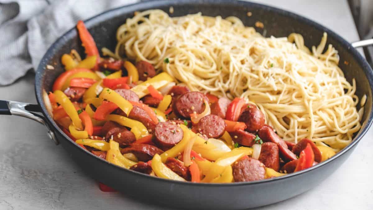 Get the recipe: Kielbasa Onions and Peppers