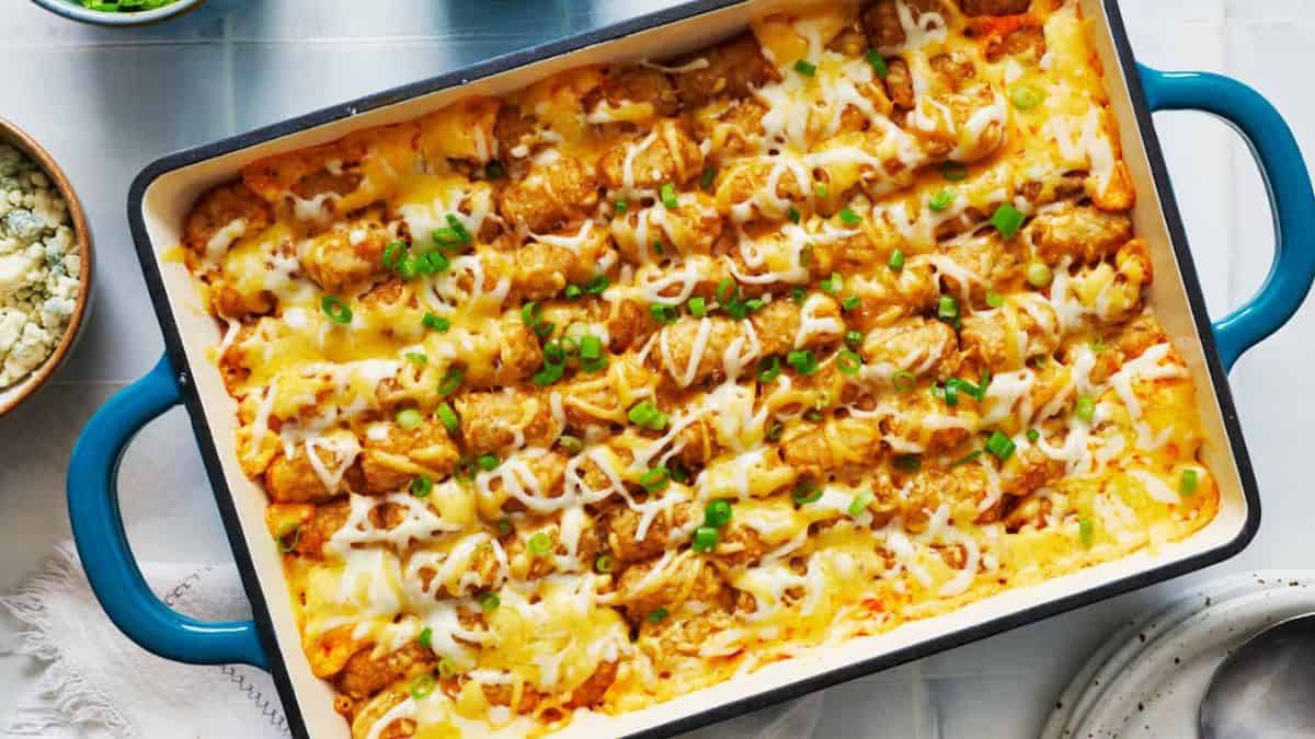 Buffalo Chicken Tater Tot Casserole