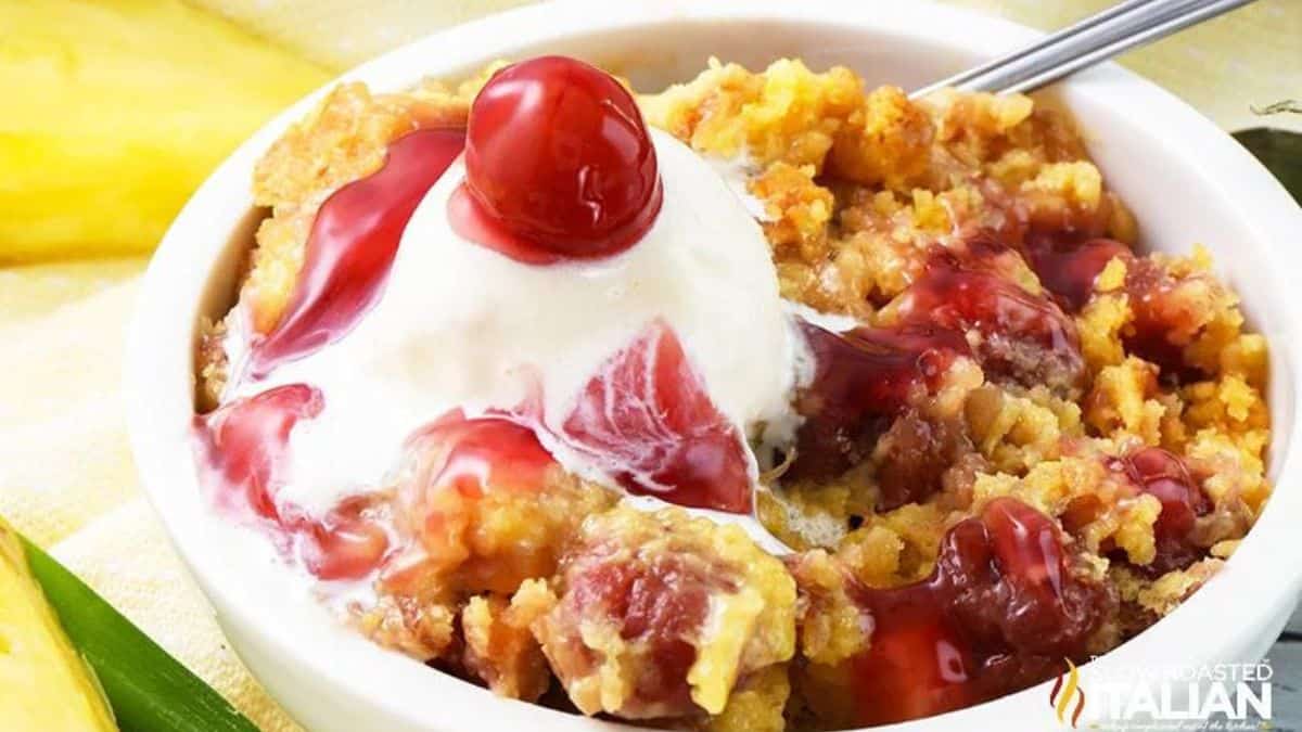 This irresistible cherry-pineapple dump cake is a breeze to make, bursting with juicy cherries and tangy pineapple under a golden, buttery crust. A perfect treat for any day!