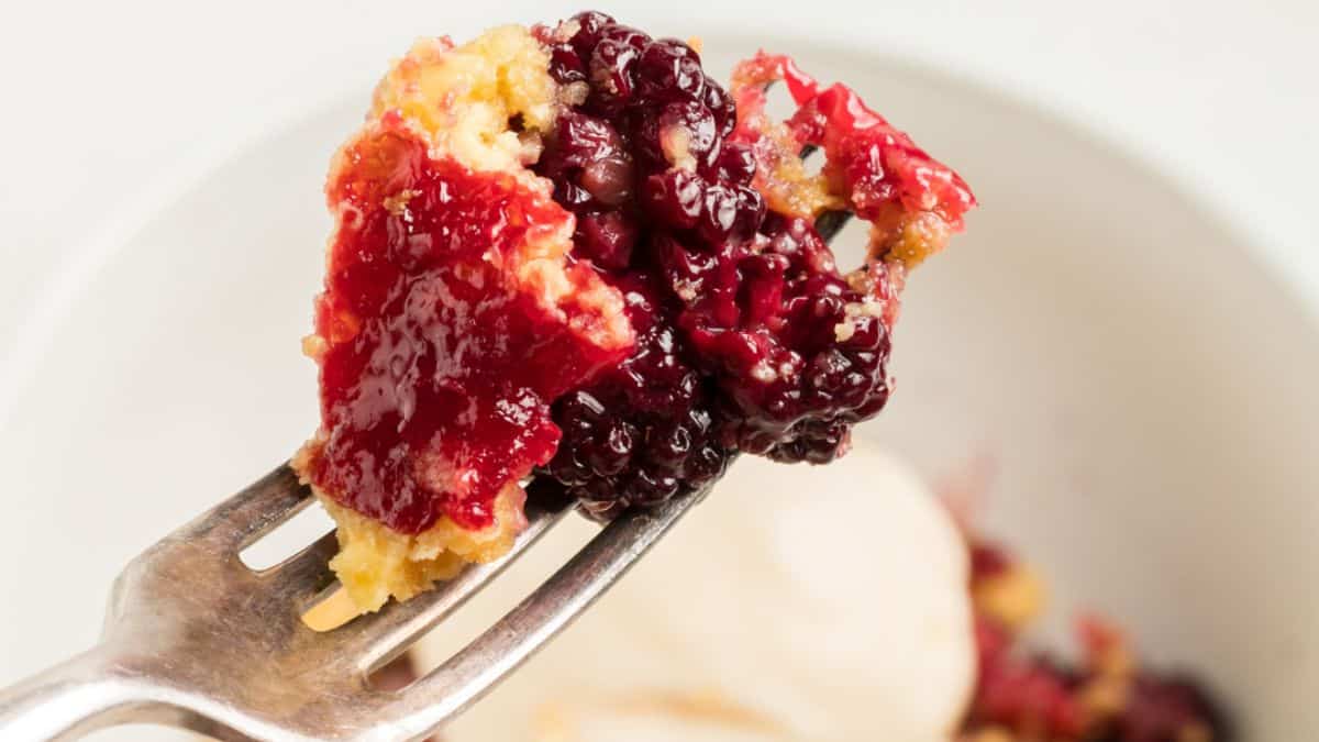 This Blackberry Cobbler is reminiscent of a cobbler recipe that is made easier with the help of store bought cake mix. This dessert is perfect with a scoop of vanilla ice cream.