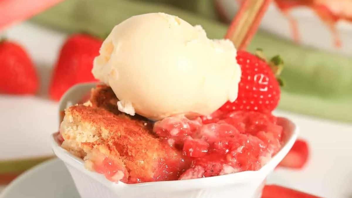 Get the recipe: Easy Strawberry Rhubarb Dump Cake
