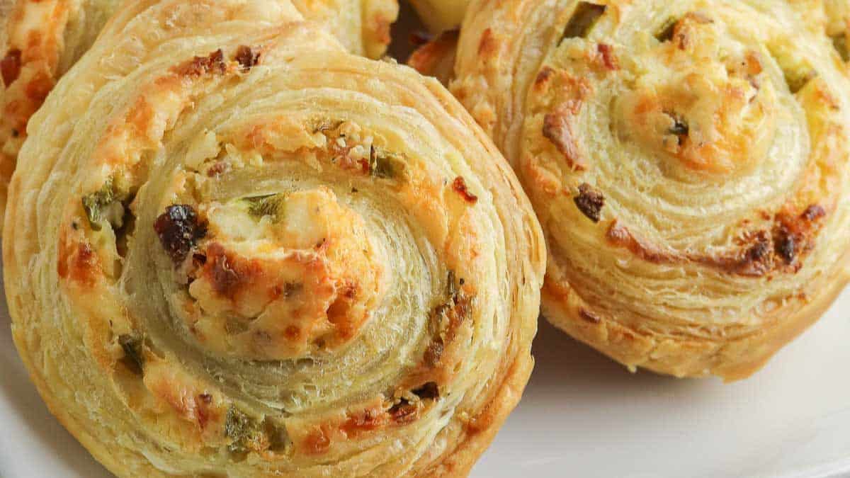 These jalapeno popper pinwheels are the perfect party appetizer. They are loaded with the flavors from a jalapeno popper but rolled into a buttery puff pastry!
