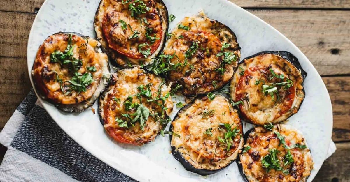 If you have less than an hour to make a delicious meal, this is the dish to go for. A roasted eggplant with mayonnaise topping and thin slices of tomato under shredded cheese makes a creamy vegan-friendly, gluten-free snack.