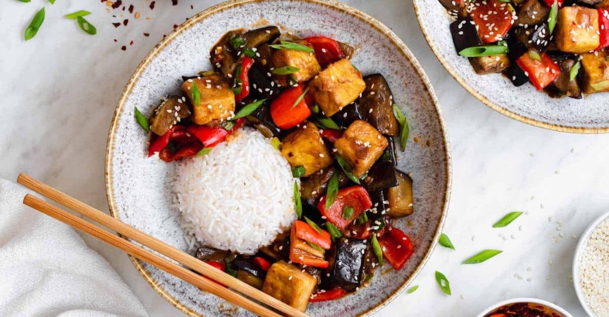 This is a famous recipe featuring fried eggplants, tofu, and red peppers. The thick and spicy coating is very flavorful, making this a one-of-a-kind, easy-to-prepare dish.