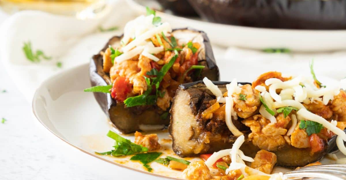 Get the recipe: Stuffed eggplant with chicken and mozarella