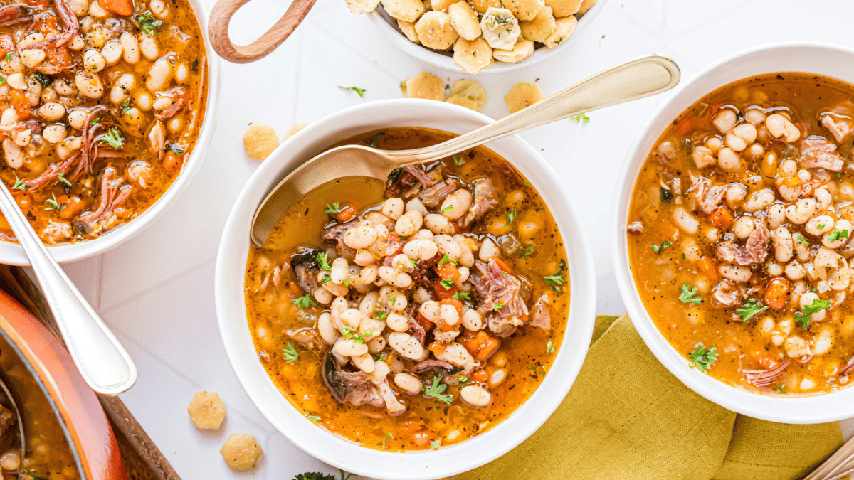 This Navy Bean Soup Recipe is great to have on a cold winter day or rainy night. Sometimes called white bean soup, It's simple to put together from mostly pantry staples and also a great use of bone-in leftover holiday ham.