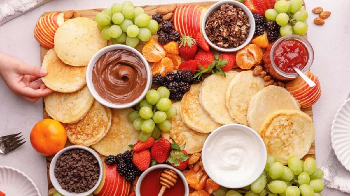 This Pancake Charcuterie Board is a fun way to present breakfast to a crowd on a weekend morning. Super simple and you can add all of your favorite accompaniments and toppings. Yum!