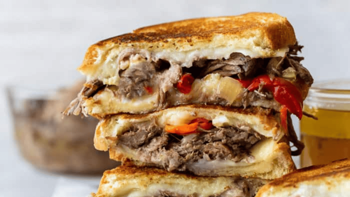 This Chicago Italian Beef Grilled Cheese combines tender, shredded beef and perfectly seasoned beef stock, and pickled peppers made in a Slow Cooker with the melty, buttery goodness of a grilled cheese. This Chicago classic is getting the upgrade you never knew it needed! Irresistible!